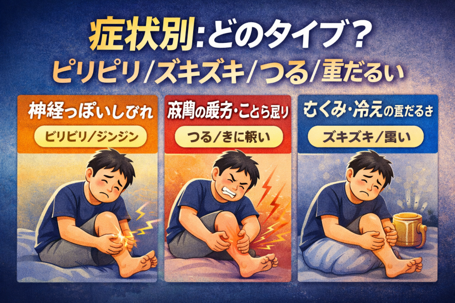 症状別:どのタイプ?(ピリピリ/ズキズキ/つる/重だるい)
