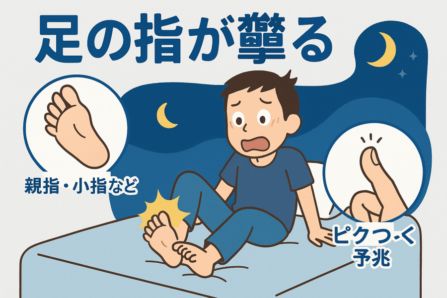 足の指が攣る現象は、夜間や就寝中に突然起こることが多いと言われています。寝ている間は体がリラックスして血流が緩やかになるため、筋肉に十分な酸素やミネラルが行き届かず、けいれんが起こりやすい状況になると考えられています。特に、寝返りの瞬間や起き抜けに足を伸ばしたときに発生することが多いと報告されています(引用元:https://www.taisho-kenko.com/disease/616/)。