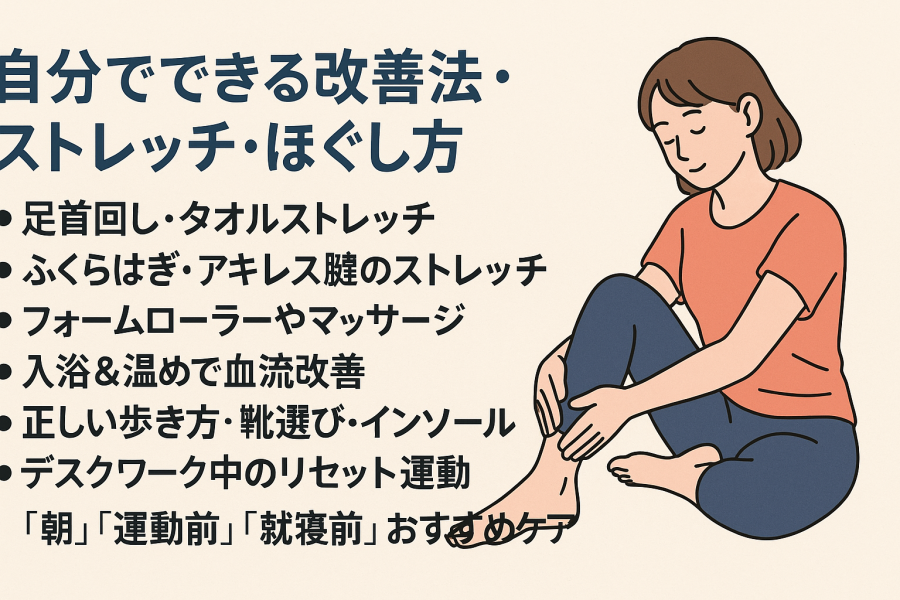 足首の固さは「ただ伸びない」だけではなく、筋肉・関節・神経・姿勢・全身バランスなど、多角的に考えることが大切です。セルフチェックで自分の状態を知ることで、より効果的な対処法が見つかります。