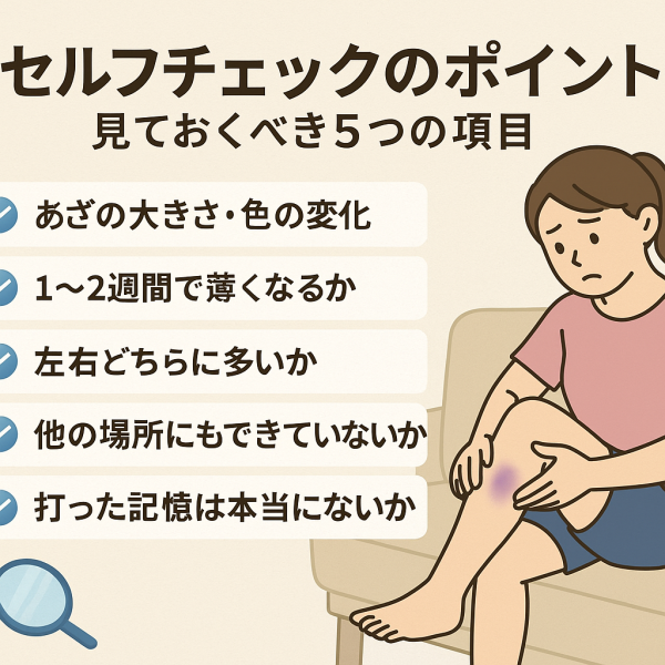 痛みのないあざだからこそ見逃しやすいのですが、体からのサインとして捉えることで安心材料につながることもあります。