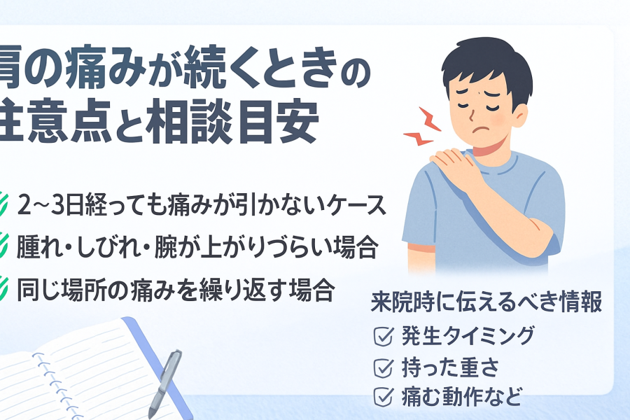「重い荷物を持ったあとに肩がズキッとしたんですけど、どうしたらいいですか?」