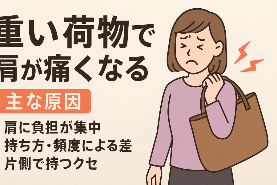 「重い荷物を持つと、なんで肩まわりがすぐ張っちゃうんだろう?」と相談されることが多いのですが、これは僧帽筋や肩甲骨まわりの筋肉に負担が偏りやすいと言われています。荷物を持つときって肩がすくむような姿勢になりがちで、知らないうちに筋肉が緊張し続けるんですよね。「気づいたら肩がパンパン…」という方は、このパターンに当てはまりやすいようです。