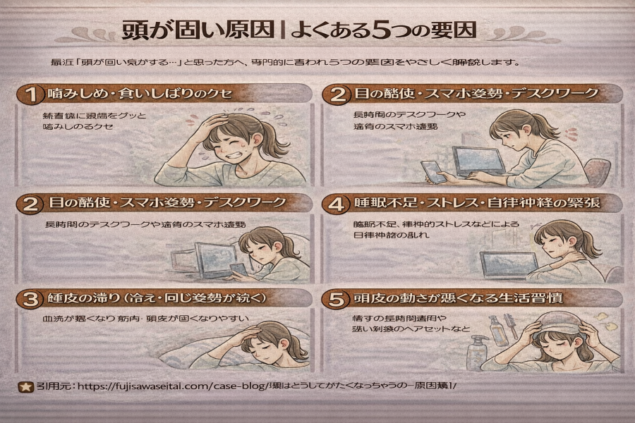 こうした習慣は、頭皮や筋膜の緊張とつながりやすいとされています。