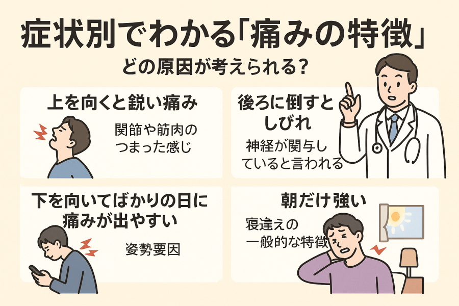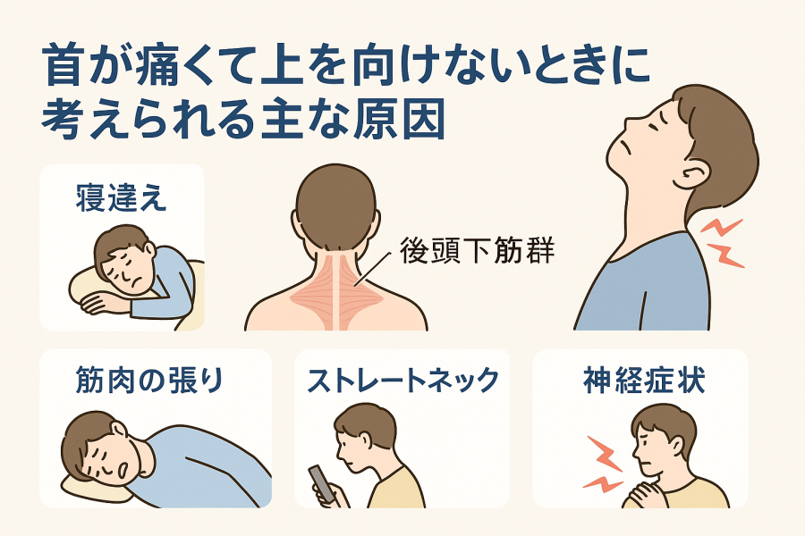 上を向くと鋭い痛み → 関節や筋肉のつまった感じ