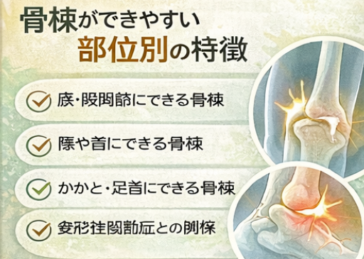 骨棘ができやすい部位別の特徴
