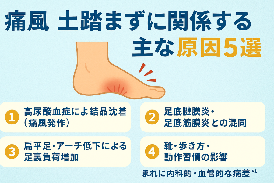 痛風による土踏まずの痛みは、一時的な違和感から始まることもありますが、急に強い痛みや腫れが出た場合は注意が必要と言われています。