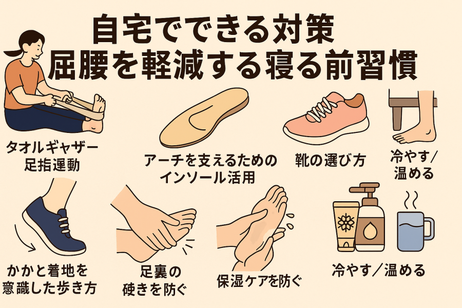 「足の裏の病気」と検索される方の多くが気にしていたのは、“今すぐ家でできる方法はないか”という点でした。実際、上位サイトでもセルフケアがよく紹介されていて、日常に取り入れられる内容が多い印象です。