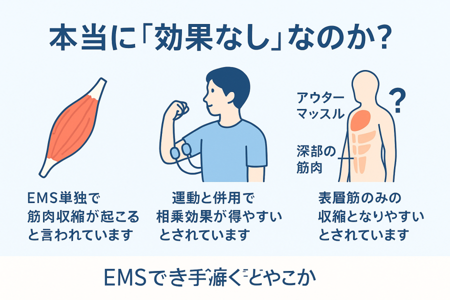 このように、「EMSそのものが効果ない」というより、**条件によって“効果を感じにくくなる要因が積み重なっている”**と言われています。